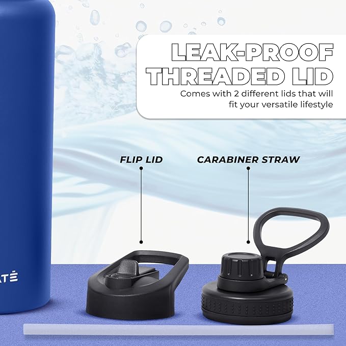 - LIDS TO SUIT YOUR SIP: Our 40 oz water bottle with metal straw offers you the flexibility of two different lids. Choose the chug lid for a quick gulp of water or the straw lid for sips from this thermal water bottle