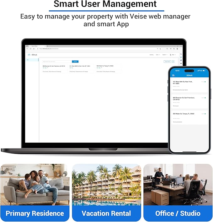 - Keyless Convenience: 7 ways to access your lock via Fingerprint + App + Web portal + Fobs + Code + eKey sharing + Mechanical key. Remotely generate an eKey and grant access to anyone, anywhere, anytime. Manage users, and view access records in the app and website management system. The App & Web is free and can be used forever