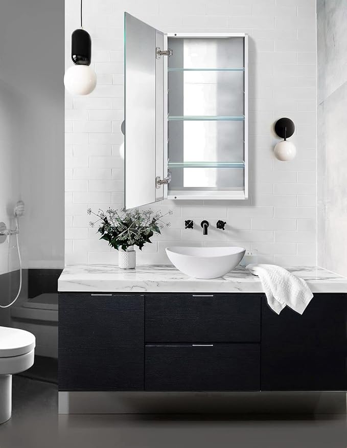- ✅DURABLE: Made with premium glass, the medicine cabinet is a high-quality product that is sturdy and durable. The bathroom mirror is also suitable for dressing room.