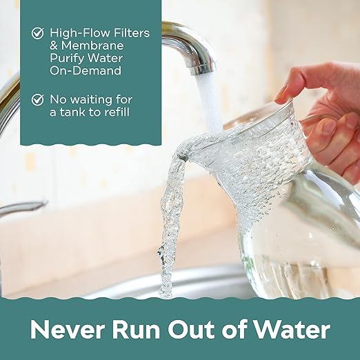 - NEVER RUN OUT OF WATER: AMI Direct Flow's ultra-high flow membrane purifies the water on demand and dispenses it directly to your faucet with no tank. Say goodbye to waiting for your water tank to refill.
