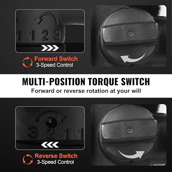 - Rotation Control: Combined forward/reverse and power management switch, 6-stage settings to adjust speed and torque to adapt to different applications.