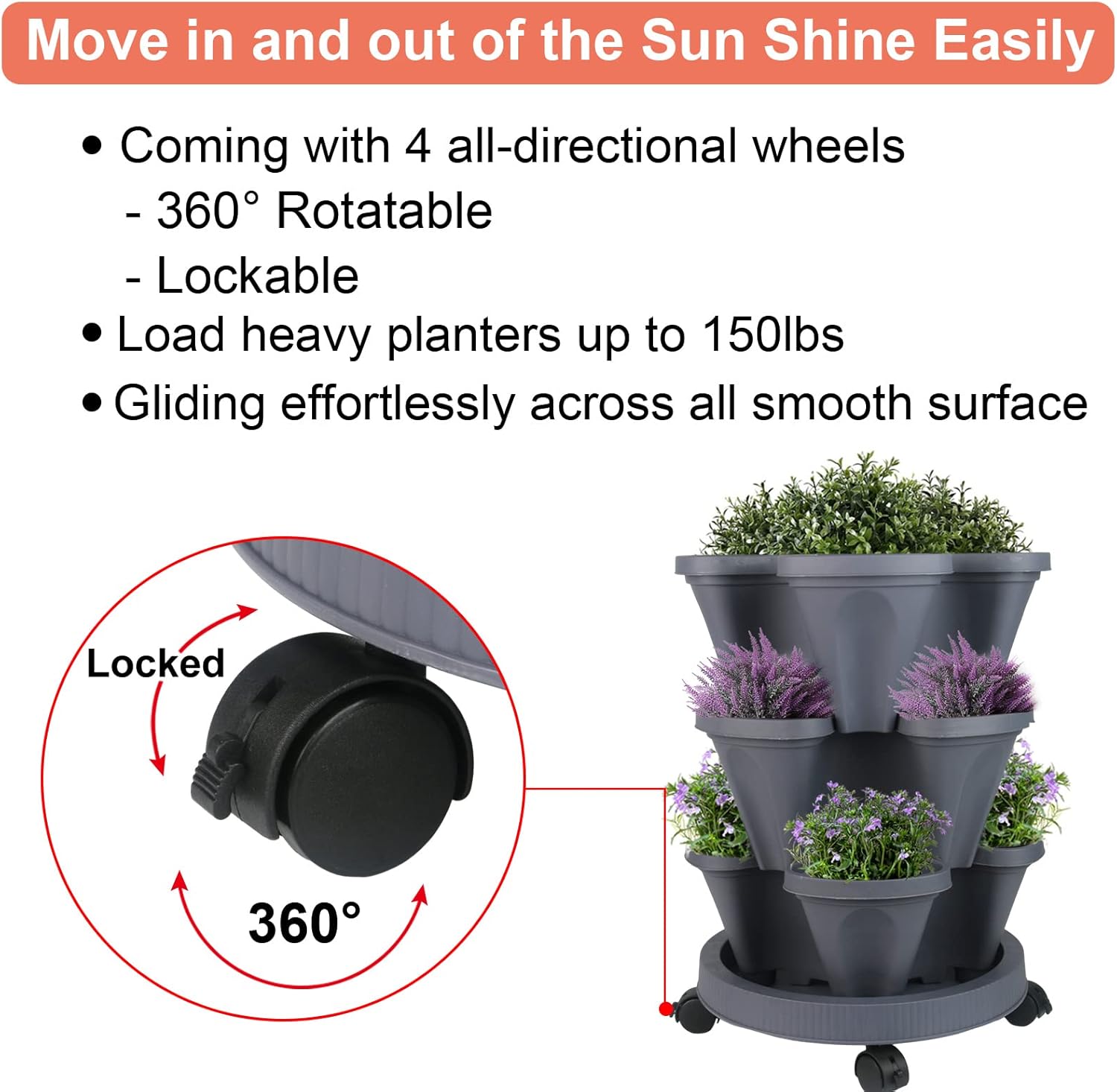 Vertical Planter 3 Tier Stackable Planters Garden Planters Strawberry Herb Flower and Vegetable Planter Indoor Outdoor Gardening Pots with Removable Wheels and Tools