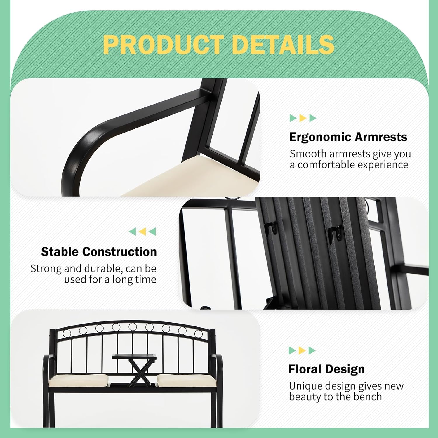 - 【Unique Design】The backrest of the metal bench outdoor has an exquisite pattern, which makes the entire metal bench look beautiful. No matter where it is placed, it is a good decoration.
