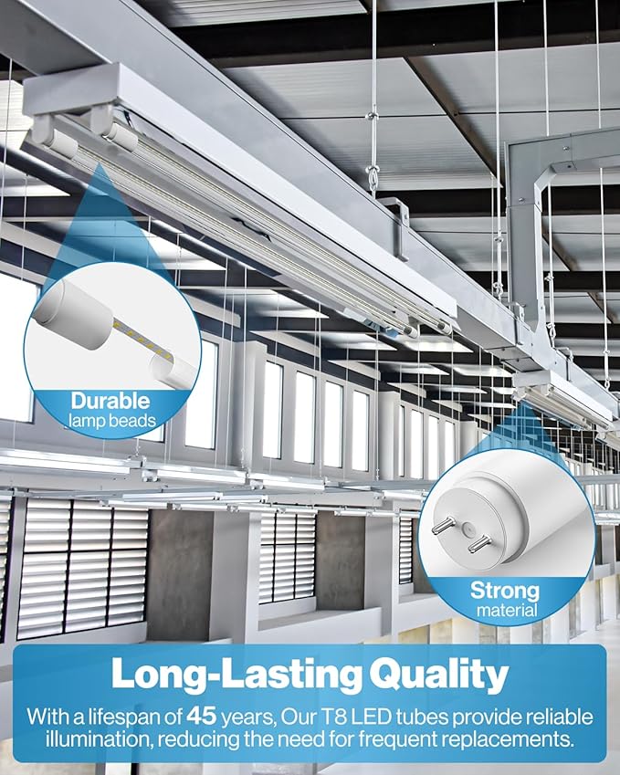 - BRIGHT LIKE DAYLIGHT - Replace your old fluorescent tube lights and instantly double the brightness of your garage or workshop by switching to our LED Type A+B T8 Tube Lights. Our T8 LED tube lights are non-dimmable and deliver consistent full brightness.