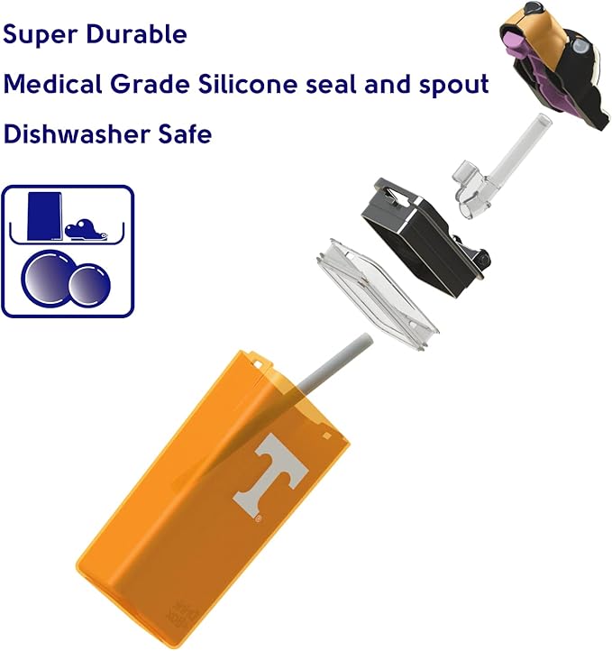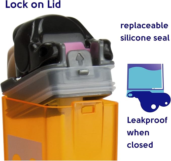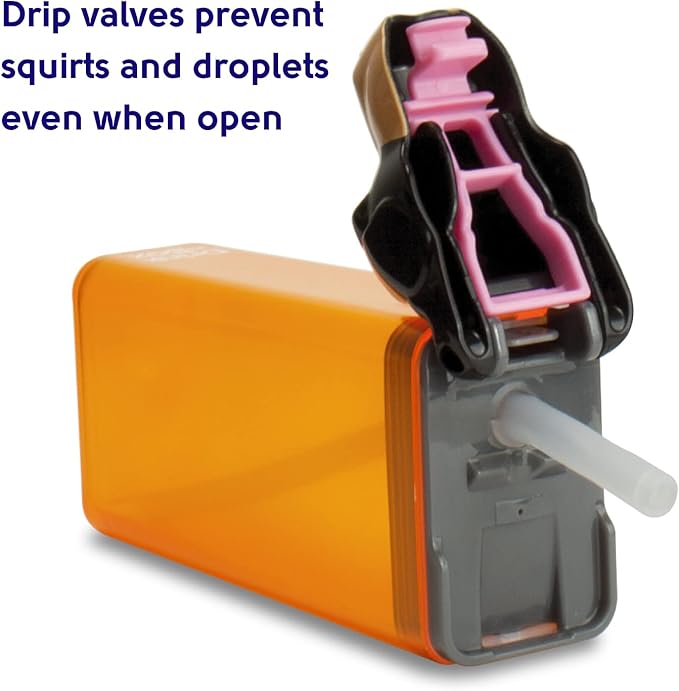 - New "heart-valve" in spout prevents drips when Drink in the Box is tipped over. Safer and better seal and locking lid prevents messy spills. Replaceable silicone straw and seal. Three year guarantee.