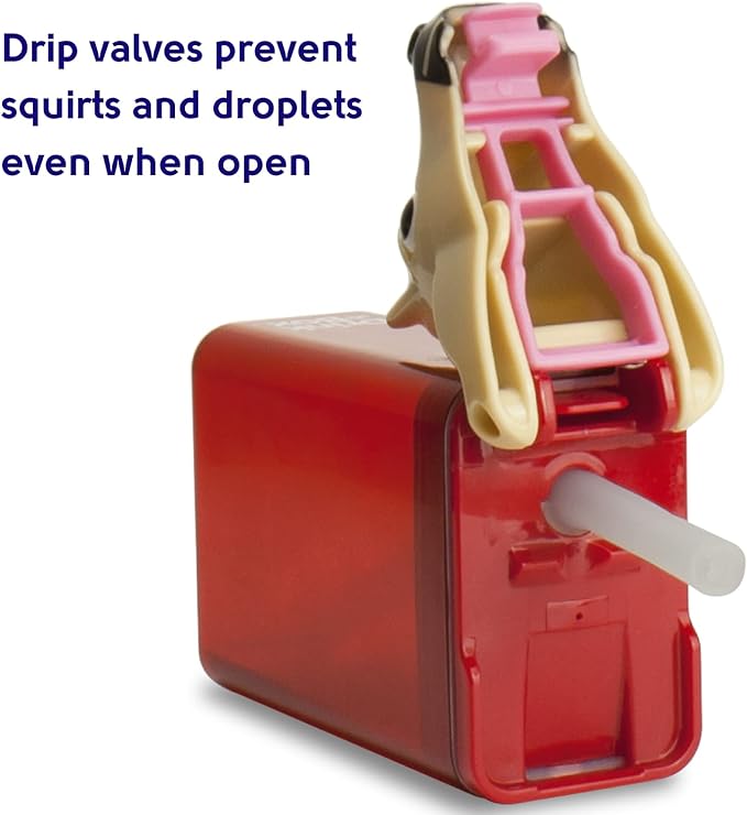 - New "heart-valve" in spout prevents drips when Drink in the Box is tipped over. Safer and better seal and locking lid prevents messy spills. Replaceable silicone straw and seal. Three year guarantee.