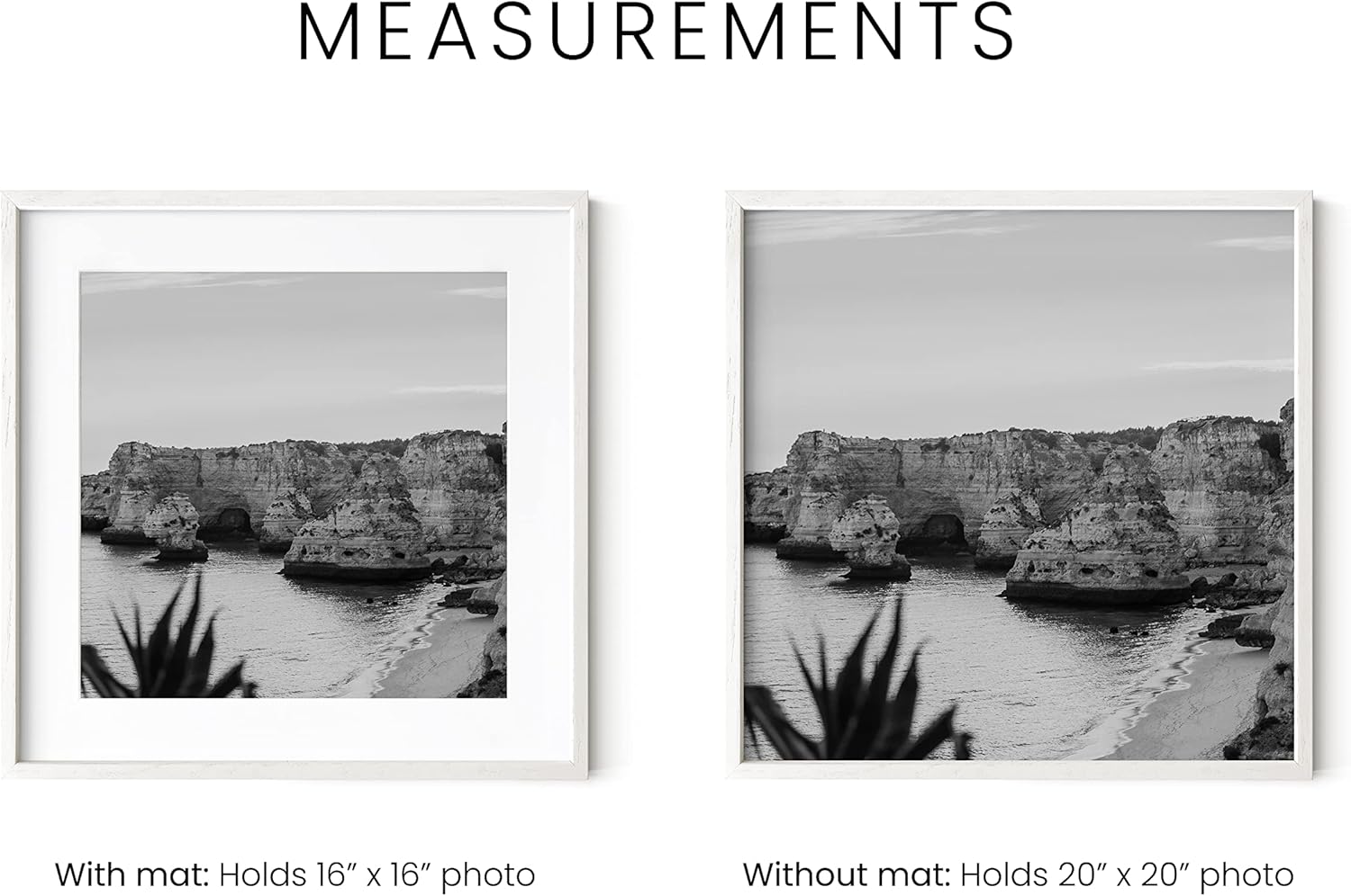 - 20x20 FRAMES WHITE SET: Our standard square picture frames are meticulously constructed using natural oak wood, known for its timelessness and durability. The slim profile of the wall gallery frame sets white photo frames effortlessly blends into any interior decor, adding a contemporary touch. The clean lines and sleek design make the wood picture frames with mat a perfect choice for those seeking a stylish, understated display solution