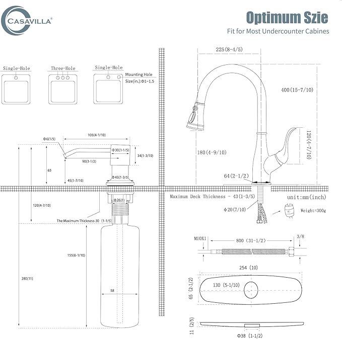- Included Components : Deck Plate *1/Sponge Pad *1, 31.49-inch Hot & Cold Water Hoses *2, 300G Gravity Ball *1/Quick Connector *1, 15.7-inch Main Faucet *1/Faucet Base *1/Rubber+SUS Washer *1, Plastic Mounting Nut *1/Brass Nut *1/SUS Screw *2 Deck Plate *1/Sponge Pad *1, 31.49-inch Hot & Cold Water Hoses *2, 300G Gravity Ball *1/Quick Connector *1, 15.7-inch Main Faucet *1/Faucet Base *1/Rubber+SUS Washer *1, Plastic Mounting Nut *… See more