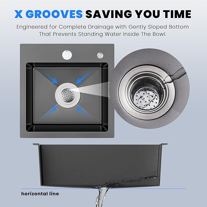 - 【Efficient and Fast Drainage】 The sloped bottom and strategically designed drainage grooves work together to efficiently channel water toward the drain, minimizing water pooling and keeping the sink surface ready for use
