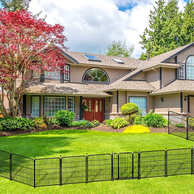 - Design and Improvement: This Garden Fence is Designed Like a Low Gate. It's More Convenient for both People and Small Pets to Come in and Go out. Each Piece of the Decorative Fence Has an Extra Insertion Bar. So, You Can Splice it into any Shape without Leaving out a Panel. The Bottom Tip Connection Bar Has been Lengthened to Make it Easier to Insert into the Ground and Provide Greater Stability and Stiffness