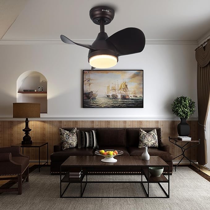 - Modern Design:Ceiling fan with light is designed with black finish metal body and 3 propeller shaped blades, it is well made and looks delicate. This small ceiling fan is space-saving and well-functioned, its modern and sleek look complements any interior which is ideal for home lighting and decor.