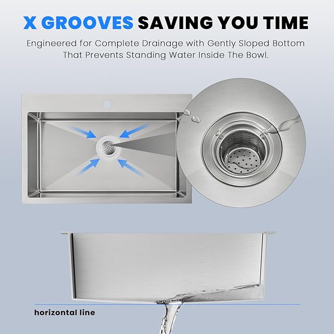 POPFLY 28×20 Inch Drop In SUS 304 Kitchen Sink, Top mount Stainless Steel 9 Inch Deep Single Bowl Kitchen Sinks, Brushed Nickel