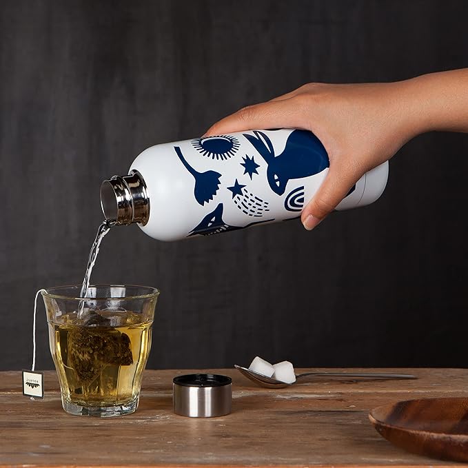- 17-ounce reusable drink bottle for hot and cold beverages. A distinctive cylindrical shape and artist-rendered design that stand out from the rest