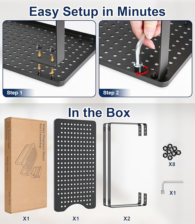 - [Sturdy and No Wobbling] Our water filter dispenser stand is crafted from heavy-duty steel with a black powder-coated surface. It provides excellent stability, ensuring there is no wobbling.