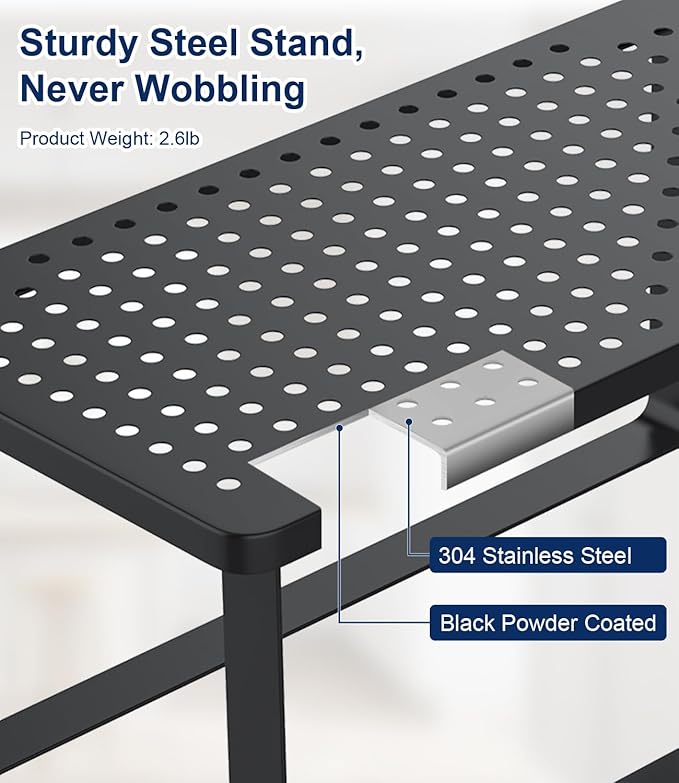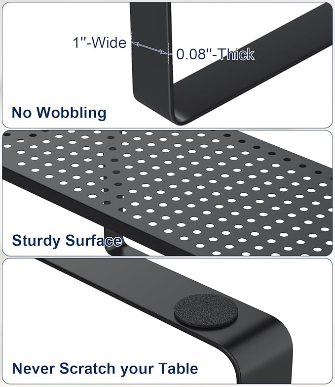 - [Effortless Installation] We provide all the necessary screws and tools for installation. No additional tools are required. You can easily set it up in less than a minute. Metal Stand size: 7.7''W x 14.6''D x 6.7''H.