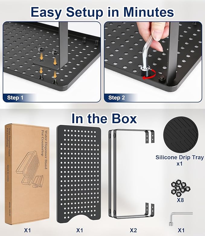 - [Sturdy and No Wobbling] Our water filter dispenser stand is crafted from heavy-duty steel with a black powder-coated surface. It provides excellent stability, ensuring there is no wobbling.