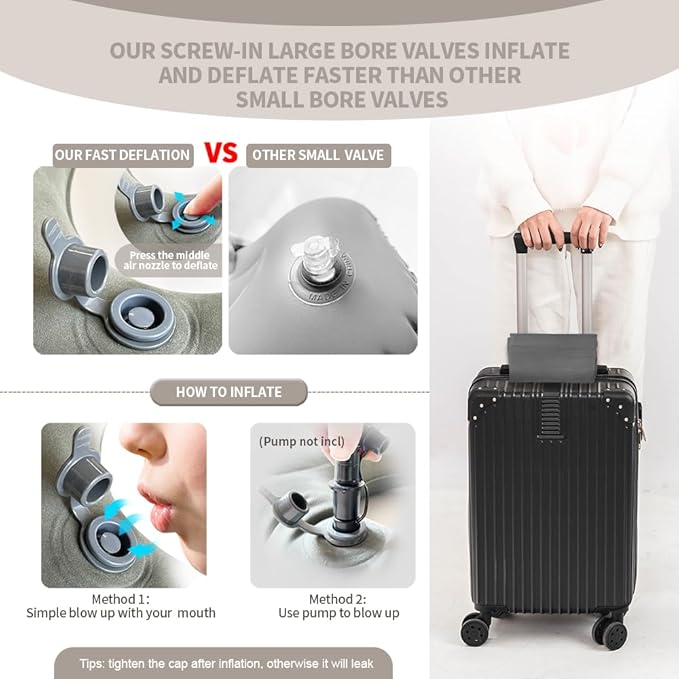 - INFLATABLE & PORTABLE: The air lifter design allows for easy inflation and deflation, making it easy to use and transport. It's perfect for travel and can be used in bed or on the couch.