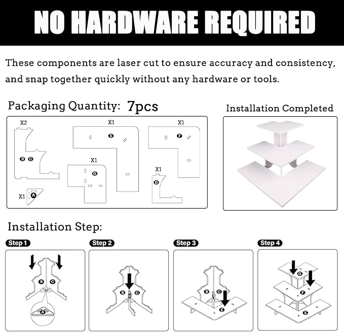 - EASY TO ASSEMBLE: Our portable display rack shelves are precision cut pieces specifically engineered to snap together. It installs quickly without any hardware or tools, and can be assembled/disassembled repeatedly, making it easy to take to farmers markets, craft shows, and trade shows. Our carefully crafted stands make products shine, this white risers display stands size: 13" L x 13" W x 9.5" H.