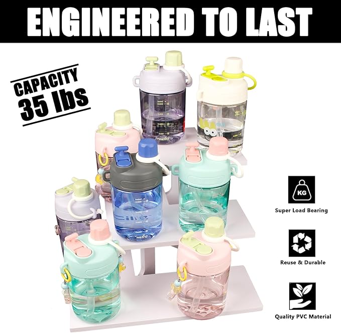 - STURDY AND DURABLE: This tiered display stand is made of 0.4 inch thick high quality polyvinyl chloride material for extra durability and safety, the bottom uses reinforced crossbars for added strength and stability and can hold up to 35 lbs, the craft fair rack has a smooth and beautiful surface with a gorgeous and stylish appearance it is one of the most practical craft fair display racks for craft shows.