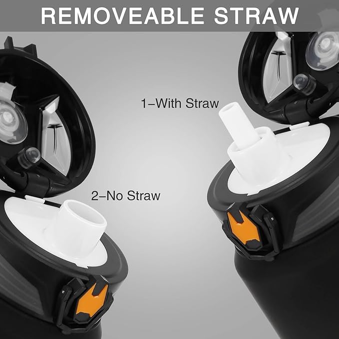 - [ ONE LID FOR 2 DRINKING WITH REMOVEABLE STRAW ] As this PHIXTON 32oz water bottle is equipped with a removable straw, it can be used as a water bottle with straw or a no straw water bottle depending your needing. It is fast water flaw without straw, suitable for men or boy, with a straw, you don’t need to raise the water bottle,it is suitable for women,girl.
