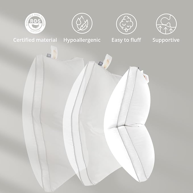 - UNRIVALED SUPPORT AND SOFTNESS: Embrace the perfect balance of support and softness with three-chamber filling design. This unique construction ensures that our down feather pillow cradles your head with gentle support while maintaining a sumptuously soft touch. Bid farewell to any discomfort as our premium natural fabric envelopes you in pure opulence.