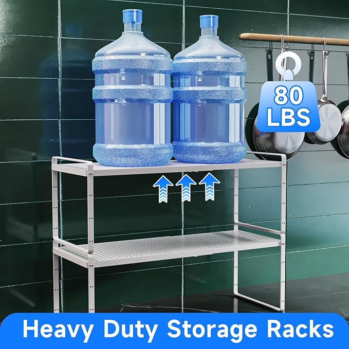 - 【Heavy-Duty Capacity】 This cabinet shelf organizer is built to last, with a durable and sturdy construction that can support up to 80 lbs of weight, making it perfect for storing even your heaviest kitchen items.