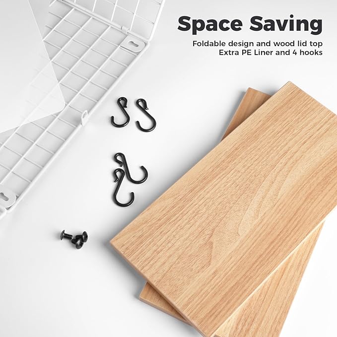 - Space-Saving Solution: Optimize your kitchen and pantry storage with this foldable wire metal basket design. The produce basket's wood lid top offers additional storage without occupying too much space. Our fruit holder for kitchen countertop is easy to assemble, - simply secure the basket and tighten with a screwdriver