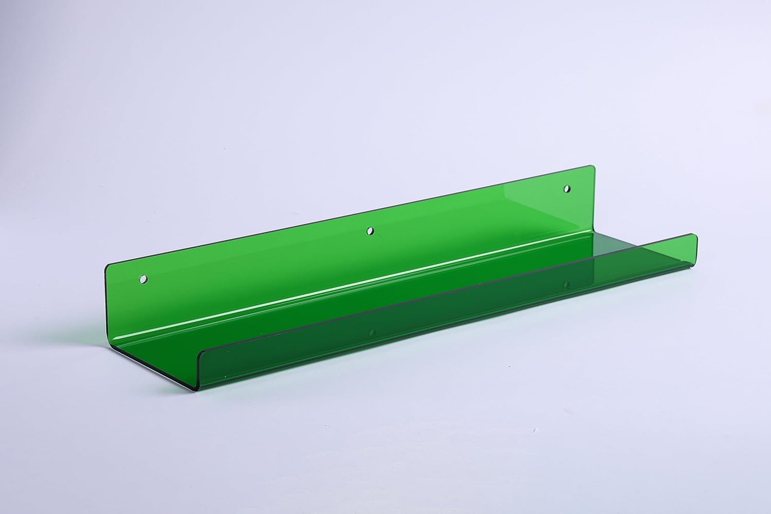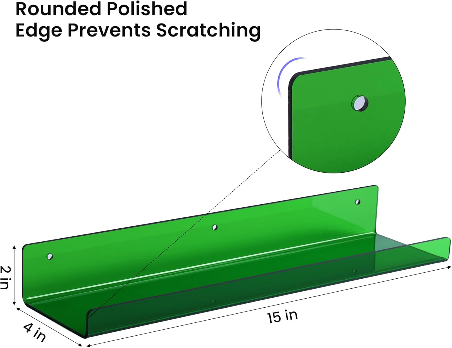 upsimples Acrylic Shelves for Wall Decor, 15" Display Shelf Perfume Organizer for Bathroom, Bedroom, Living Room, Floating Bookshelves for Kids, Clear Green, 4 Pack