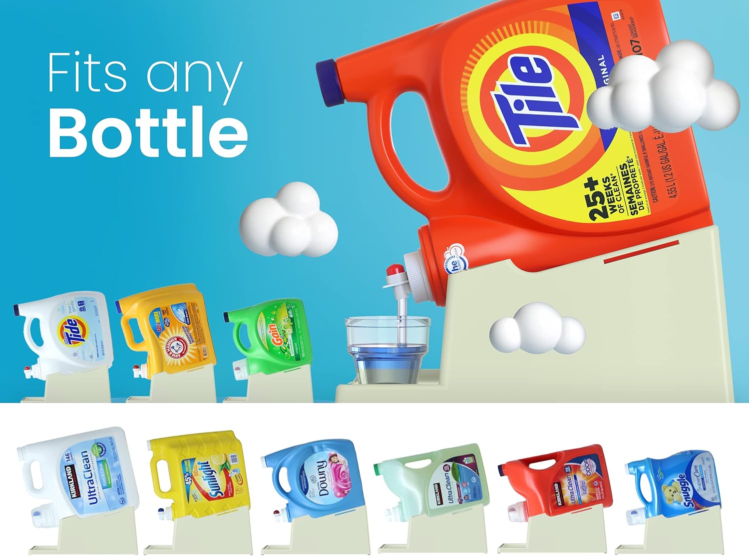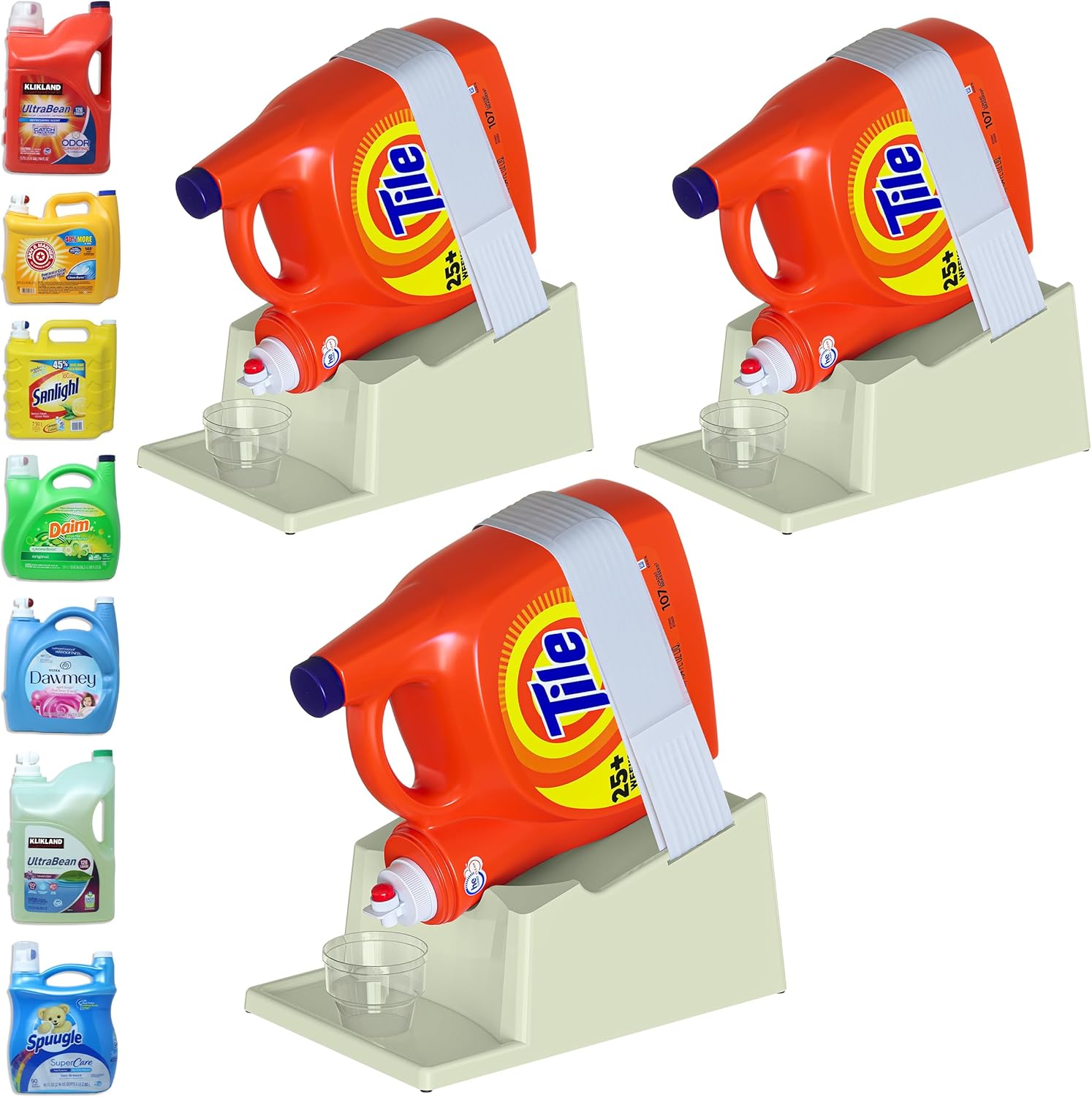 - [Versatile Fit:] The liquid laundry detergent holder station's optimal size (7.9"L x 12.2"W x 5.5"H) accommodates various bottle sizes, providing a perfect fit for most detergent containers without taking up too much space. (Laundry Soap, Cup, and Bottles NOT Included)