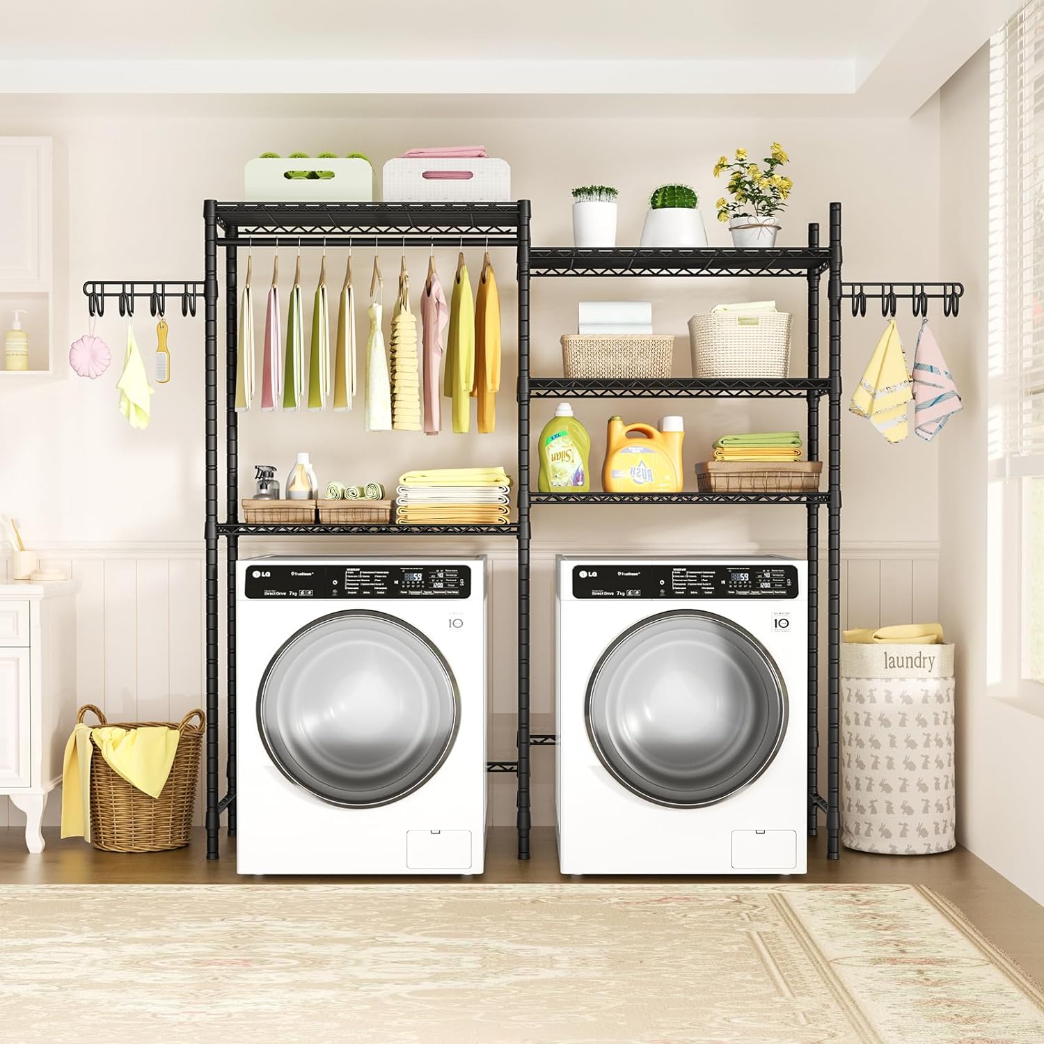Ulif U5 Over the Washer and Dryer Storage Shelf, Laundry Room Space Saver Bathroom Storage and Organizer Rack for Hanging Towels and Drying Clothes with 5 Wire Shelves, 58.2"W x 13.4"D x 77.5"H, Black