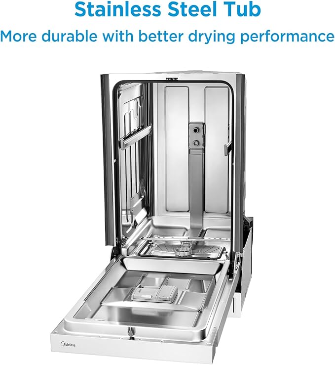 Midea MDF18A1AWW Built-in Dishwasher with 8 Place Settings, 6 Washing Programs, Stainless Steel Tub, Heated Dry, Energy Star, White