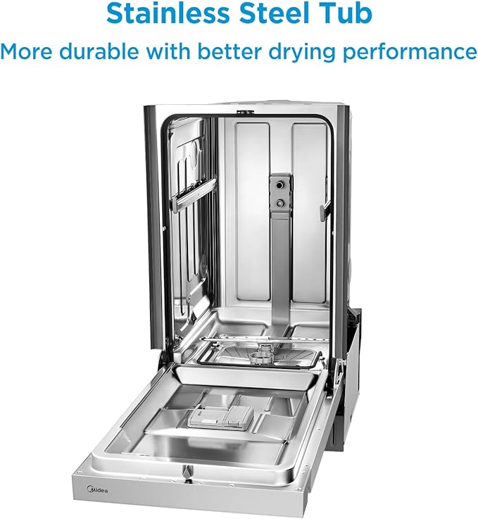 Midea MDF18A1AST Built-in Dishwasher with 8 Place Settings, 6 Washing Programs, Stainless Steel Tub, Heated Dry, Energy Star