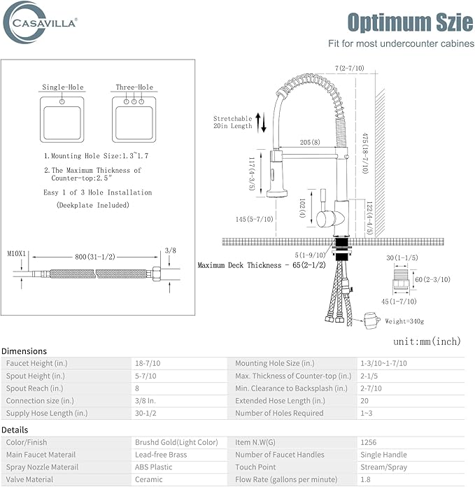 - 【EASY MAINTENANCE】Lead-free solid brass body and commercial SUS 304 stainless steel spring construction forged products. Brushed Gold surface treatment added 18/8 Chromium/Nickel content provides a superior anti-corrosion and anti-rust finish that prevents dirt such as fingerprints or water stains from adhering to the faucet surface, making the kitchen look cleaner. Daily cleaning with a cloth or water is enough, less time cleaning and more time having fun with your family.
