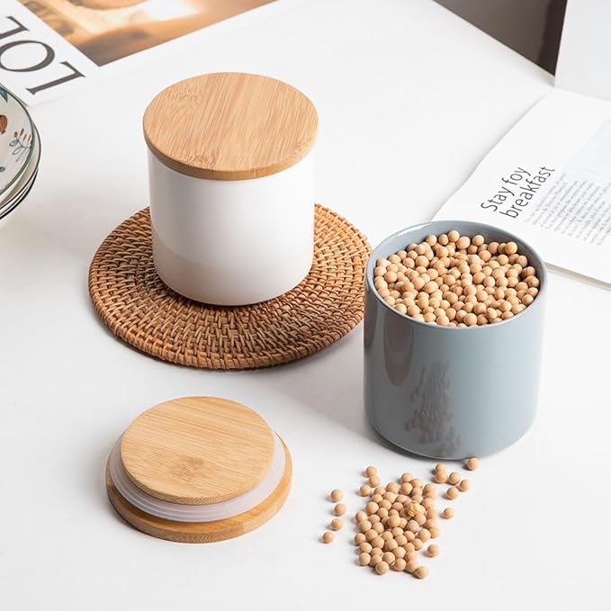 - Ceramic Material - Sweejar food storage containers are made of food grade, smooth porcelain. The containers with wooden lid and rubber seal to ensure a true airtight seal and lightproof. They are good for maintaining food and seasoning fresh.