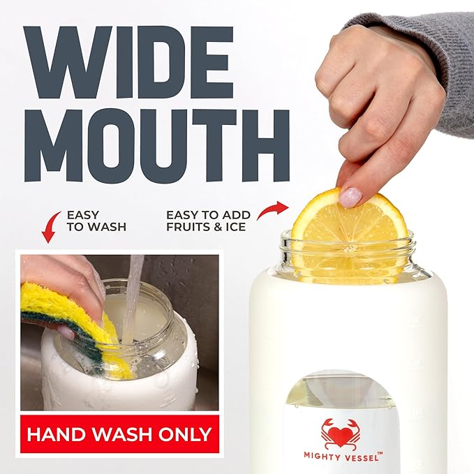- {Cleaning Made Simple} - Our water bottle tracker is equipped with a wide mouth to simplify the cleaning process, ensuring a hassle-free experience while allowing for effortless addition of ice and fruits for your personalized hydration.