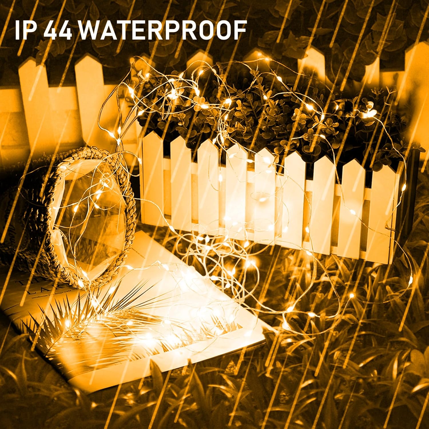- FLEXIBLE SOLAR STRING LIGHTS: The copper wire material can be easily transformed into the shape you want, or wrapped around tree trunks or outdoor fixtures as you like, it will not overheat for hours, safe and durable.