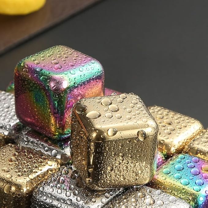 ShanSon Wine Chillers Metal Ice Cube 8 PCS Stainless Steel Whiskey Stones Reusable Whiskey Rocks Beverage Chilling Stones for Scotch and Bourbon Drinking Gifts Set for Men Dad Husband,Gold