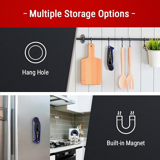 - Ultra-fast and Highly Accurate: Instant read meat thermometer features a precise thermocouple sensor get speedy readings within 2-3 seconds, accurate to ±0.9 degree Fahrenheit (±0.5 degree Celsius); No more leaning over a hot grill, just seconds make all the difference between perfectly cooked instead of overcooked