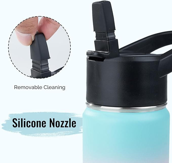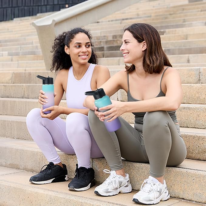 Stainless Steel Water bottle with Straw & Wide Mouth Lid, Wide Rotating Handle, 24oz Double Wall Vacuum Insulated Water Bottle Leak Proof, BPA Free, Keep Cold and Hot, 24oz, Purple Gradient
