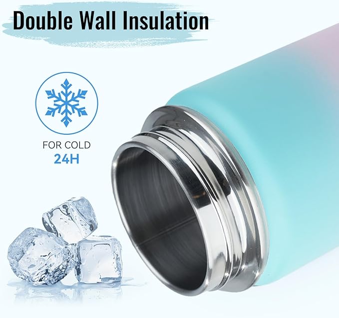 - đ„€EXCELLENT INSULATION: Our stainless steel water bottle construction made from copper coating helps the water bottle to retain the cold or heat. It can keep hot drinks for 12 hours and cold drinks for 24 hours. Safe and easy to carry anywhere.