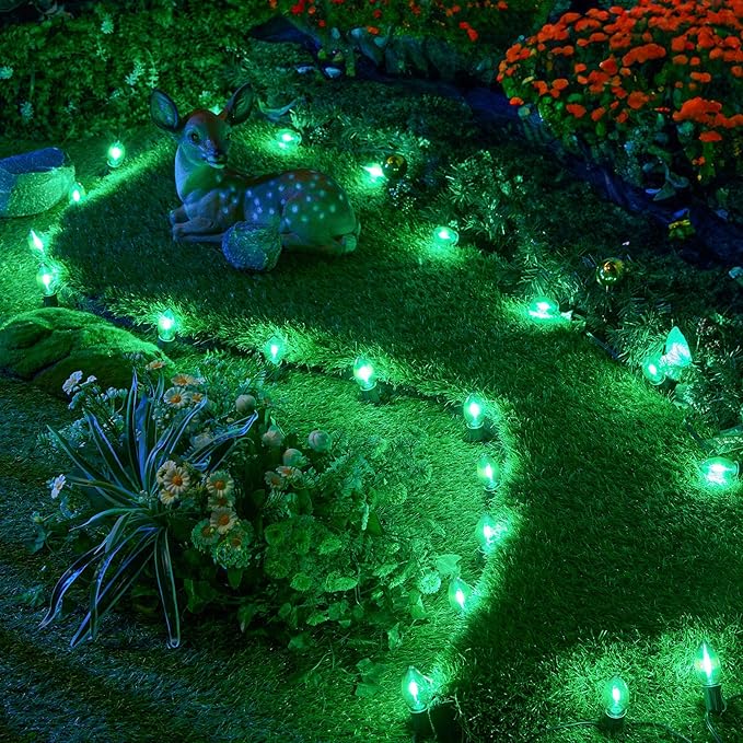 Brightown 25 Pack C9 LED Christmas Light Bulbs, Green Plastic C9 Shatterproof LED Bulbs Replacement for Christmas String Lights, E17 Intermediate Base, Commercial Dimmable Holiday Bulbs