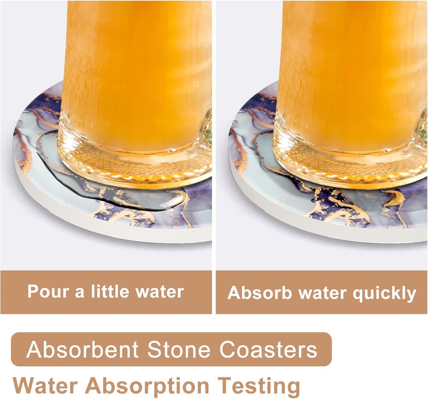 - ABSORBENT CERAMIC COASTERS: The absorbent ceramic material on the top layer of the coaster keeps your table dry and protects it from water stains.