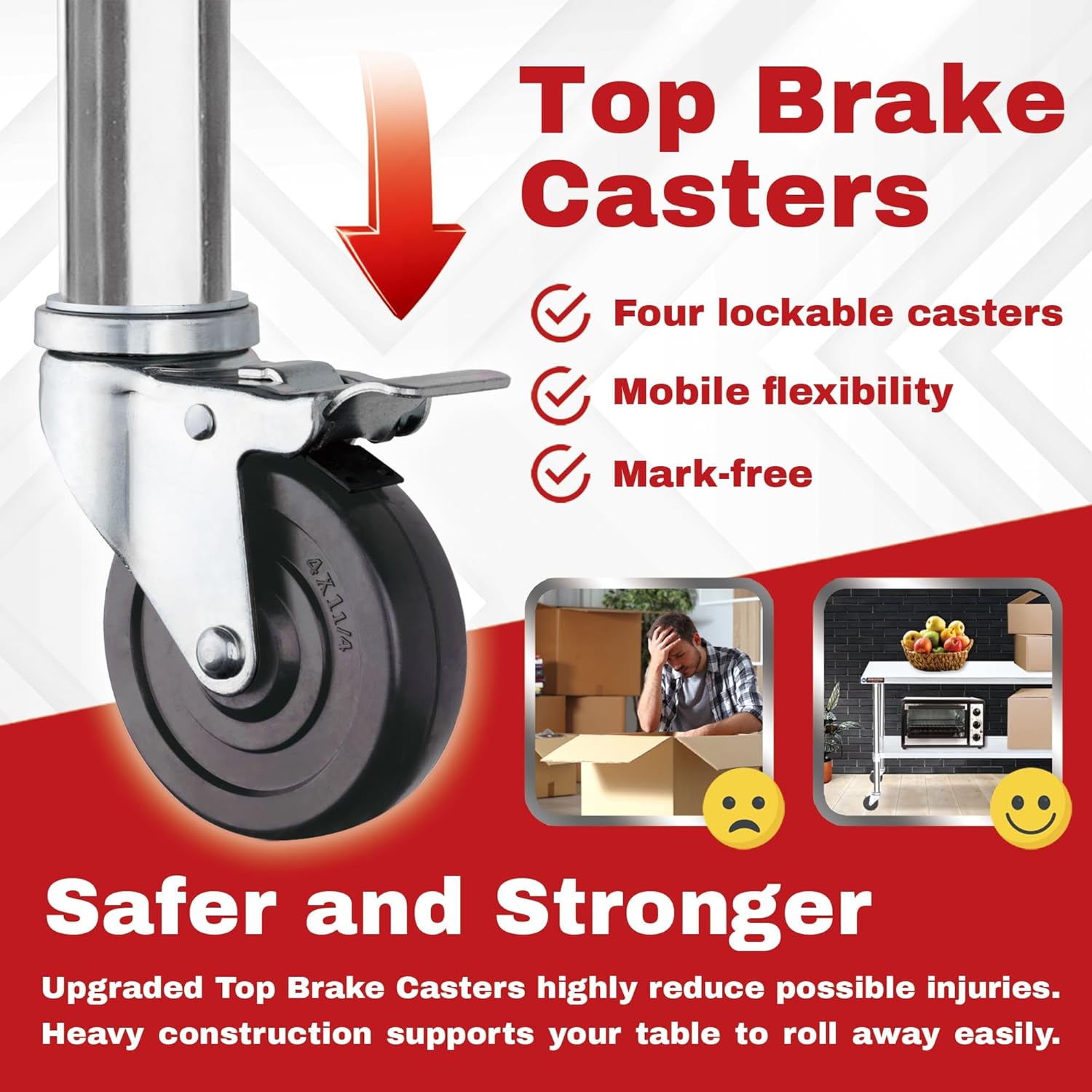 - Premium Design: The heavy-duty table with 18 gauge #430 stainless steel has extraordinary anti-corrosion abilities, which makes it stand decades. The superior weight capacity up to 700 lbs for the top