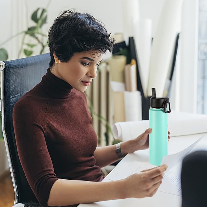 Volhoply 24 Ounce Insulated Water Bottle With Straw Lid,Stainless Steel Wide Mouth Sport Bottles With Handle,Double Wall Vacuum Thermos keep Cold,Reusable Travel Thermal Cups For Holder,Gym(Mint,1)