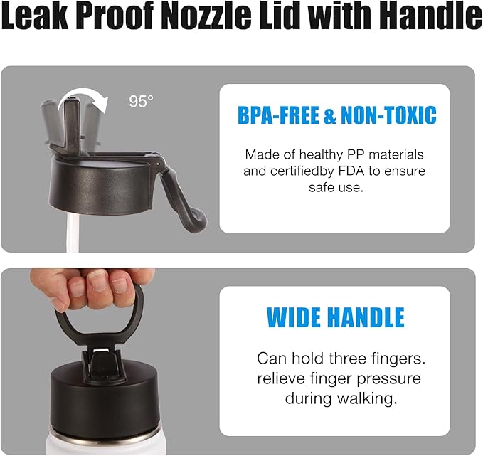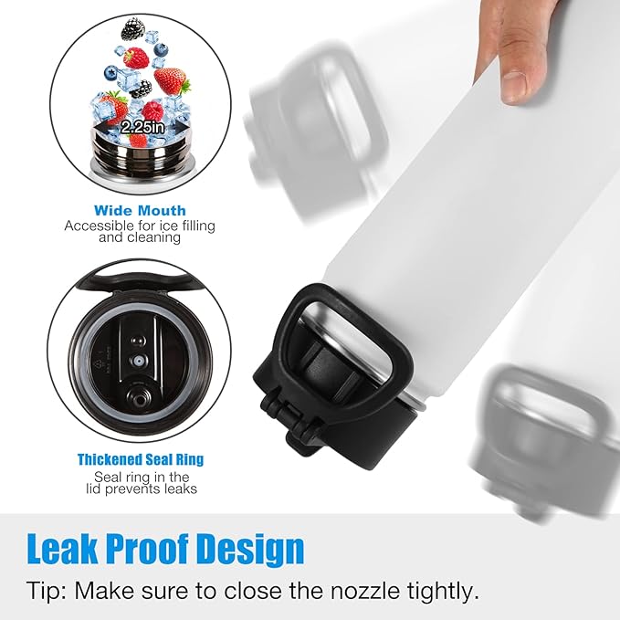 - CONVENIENT BOTTLE DESIGN: The lid is designed with a straw lid,flip-top spout makes it easy to drink,no leakage when fully closed,foldable handle,slim bottle can be easily put in your school bag,perfect fit for car cup holder,wide spout for easy refilling of water or adding ice cubes.