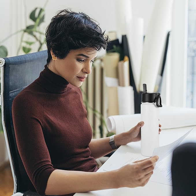 Volhoply 24 Ounce Insulated Water Bottle With Straw Lid,Stainless Steel Wide Mouth Sport Bottles With Handle,Double Wall Vacuum Thermos keep Cold,Reusable Travel Thermal Cups For Holder,Gym(White,1)