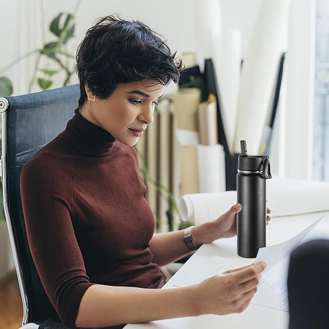 - VACUUM INSULATION DOUBLE WALL: The water bottle is designed with vacuum insulation, which can keep your drink warm for 12 hours and cold for 18 hours, perfect for you to use at home or take with you when you go out for traveling.