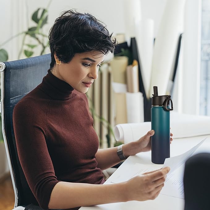 - VACUUM INSULATION DOUBLE WALL: The water bottle is designed with vacuum insulation,which can keep your drink warm for 12 hours and cold for 18 hours,perfect for you to use at home or take with you when you go out for traveling.