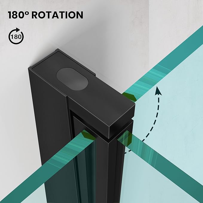 - FRAMELESS DESIGN - Frameless bathtub shower glass door, includes one glass door panel and one swing hinged support bar rotating nearly 180 degrees, allowing for a large walk-in range while remaining completely open, easy to fold for storage, open and close.