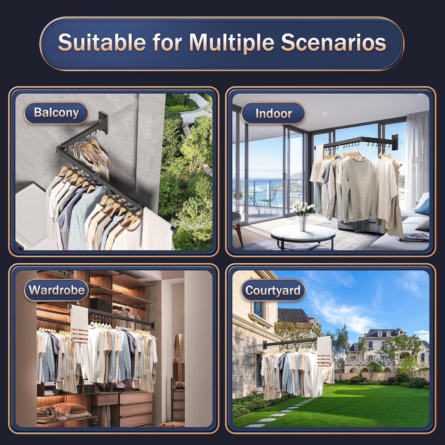 - (Effortless and Secure Installation This clothing rack can be installed with or without drilling)---catering to your preferences. Both installation methods are user-friendly, but for a drill-free setup, ensure the wall surface is smooth, such as ceramic tiles, to ensure a firm and secure hold.